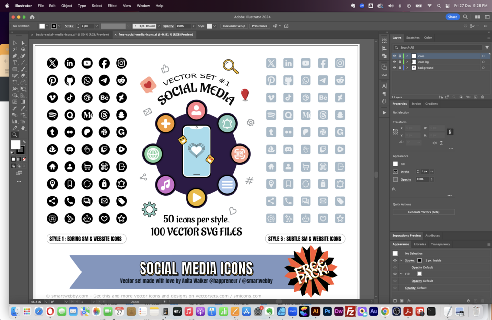SmartWebby.com is releasing the latest Vector Sets for designers around the world starting with Social Media Icons vector sets and Website Icons vector sets (Extended versions coming soon!).