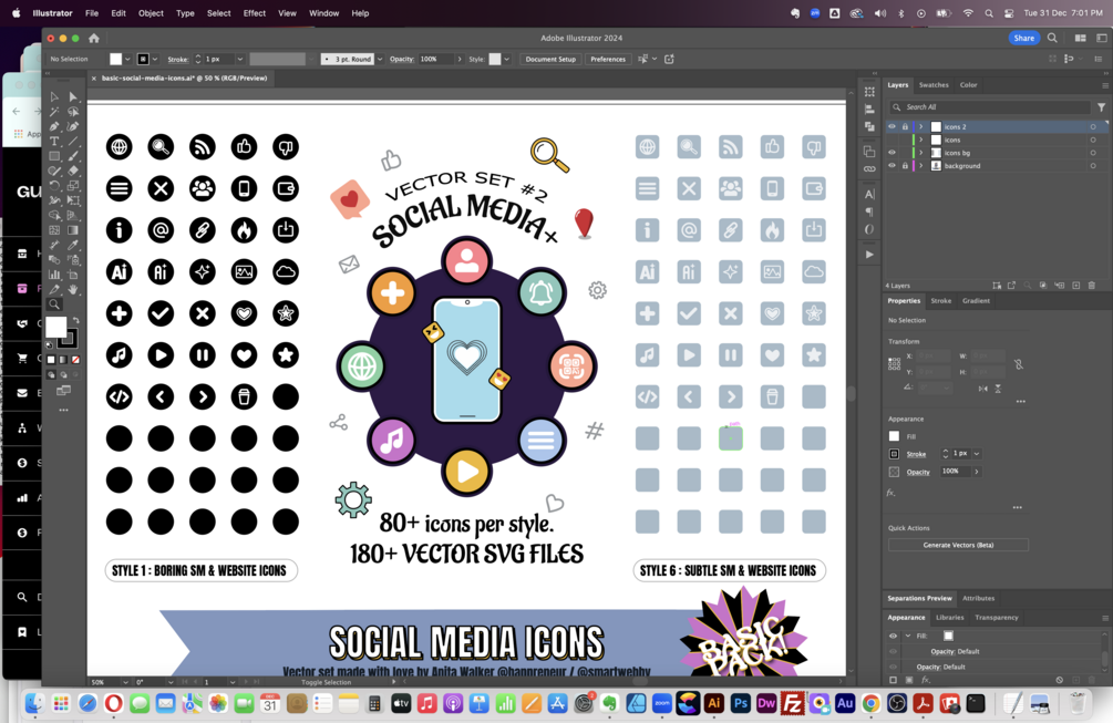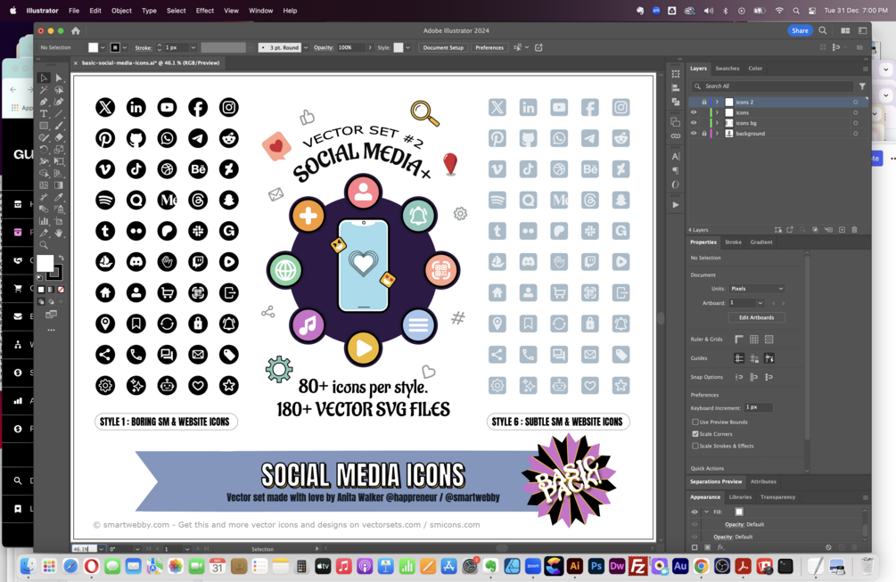 Each Social Media Icon and Website Icon is hand crafted to perfection on a 24x24 icon grid and keyline template so you don't have to do any heavy lifting. All other SVG designs use a 96x96 icon grid and keyline template.