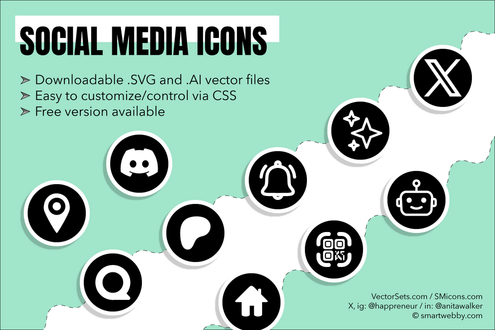 SmartWebby.com is releasing the latest Vector Sets for designers around the world starting with Social Media Icons vector sets and Website Icons vector sets (Extended versions coming soon!).